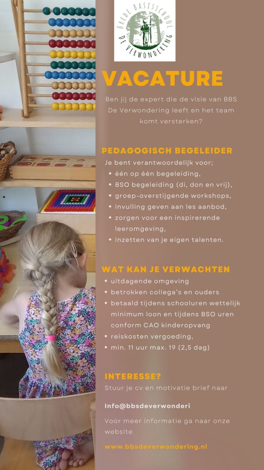Ben jij de expert die de visie van BBS De Verwondering leeft en het team komt versterken?